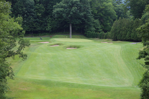 The Sagamore was closed and the golf course abandoned, in 1981. Five years later, the resort re-opened to new owners and the golf course was reclaimed from nature’s advancing arms. The golf course is a classic example of mountain golf , with holes teeing down from bluffs and up from hollows. A front-nine meadow (where four holes are housed) offers a respite from the vertical transitions but, hey flatlander, you came to the mountains for a reason.