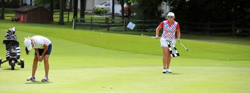If western New York is going to claim winners in the girls and/or boys divisions of the inaugural AJGA New Era Junior Championship at River Oaks golf club, it will be a come-from-behind story. In the girls bracket, Katie Kim added a 2nd-round 71 to her opening 73 to take a three-stroke advantage into Thursday’s third and final round. Her closest challenge, Maren Cipolla of Lewiston, tacked a Wednesday 73 onto her 1st-round 75. Chelsea Dantonio of Lancaster sits six strokes in arrears while Sara Riso of Hamburg is at 153, 8 strokes behind. The lead group of Kim, Cipolla and Emily Mills of New Jersey tees off hole #1 at 11:30 am on Thursday.
