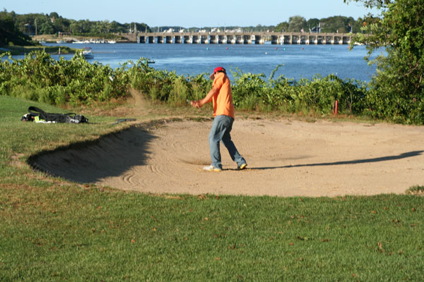 The folks at Bass River can’t wait to mention the ninth, calling it the course’s signature hole. I’m not a big fan of that moniker, as it takes away from the other 17 on the course. The ninth is a fine par three with all-world views of the Bass River and the town of Dennis, across the water. You’ll love it, just as you will love the remaining challenges. Nine plays over a marsh, just as nine did yesterday at Whitinsville. Cool stuff.
