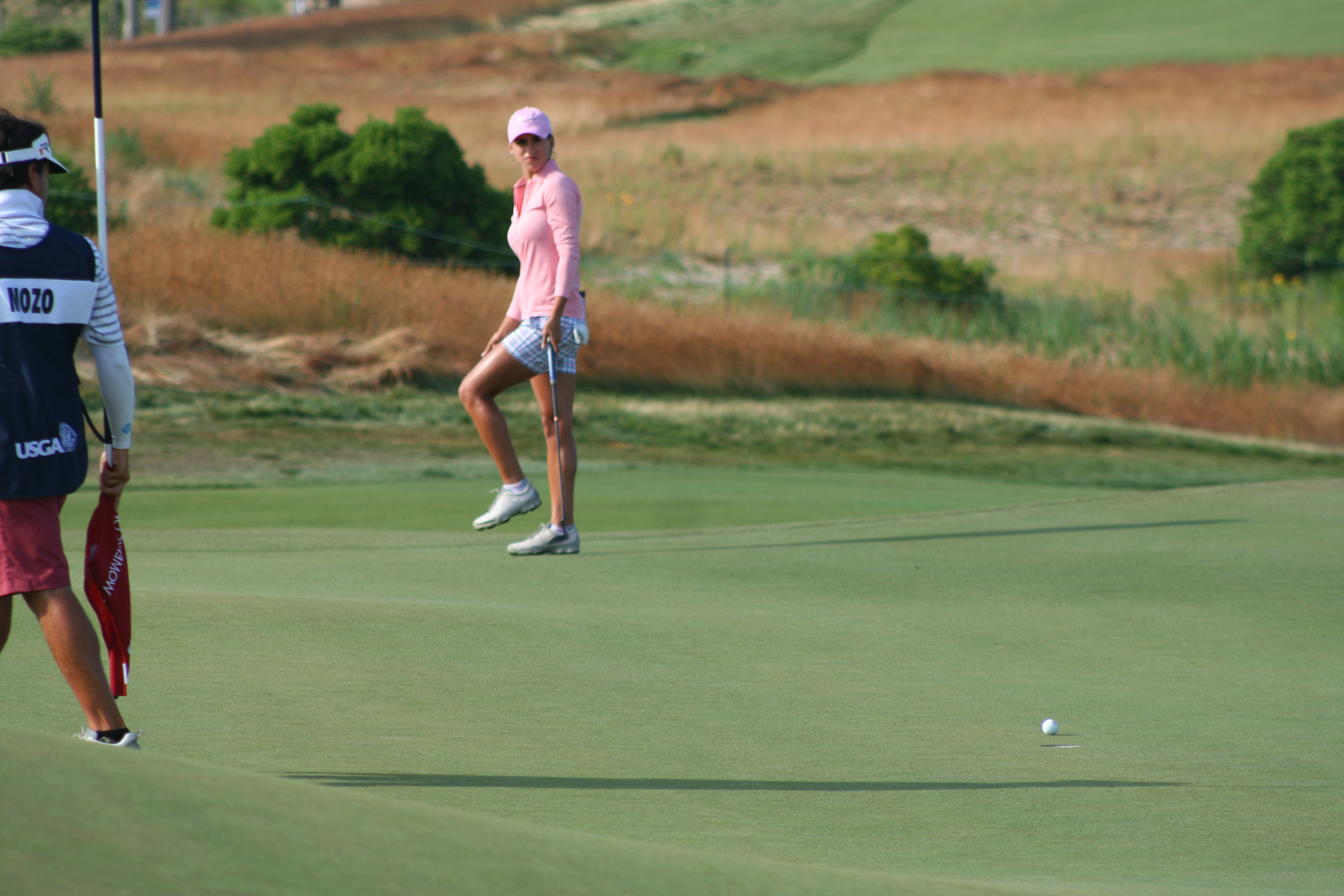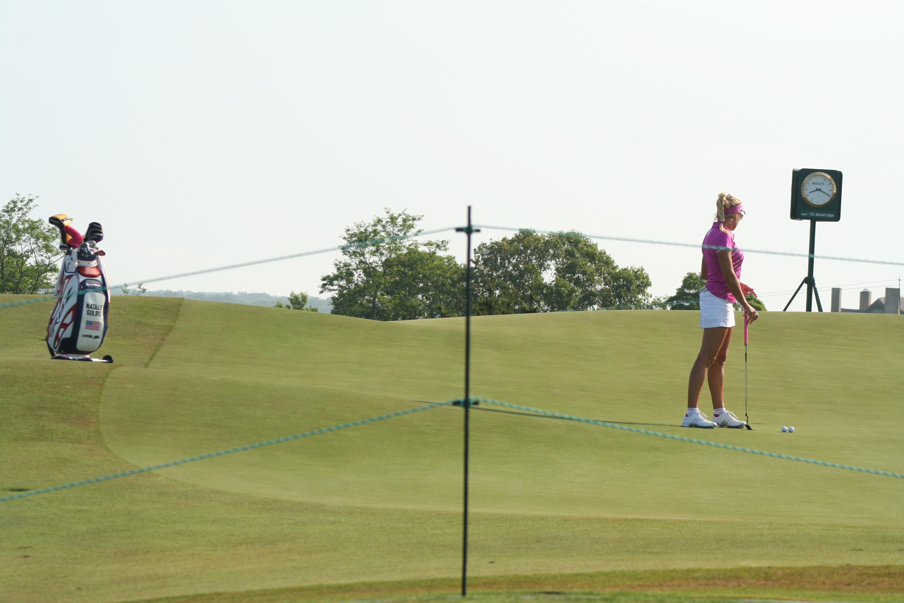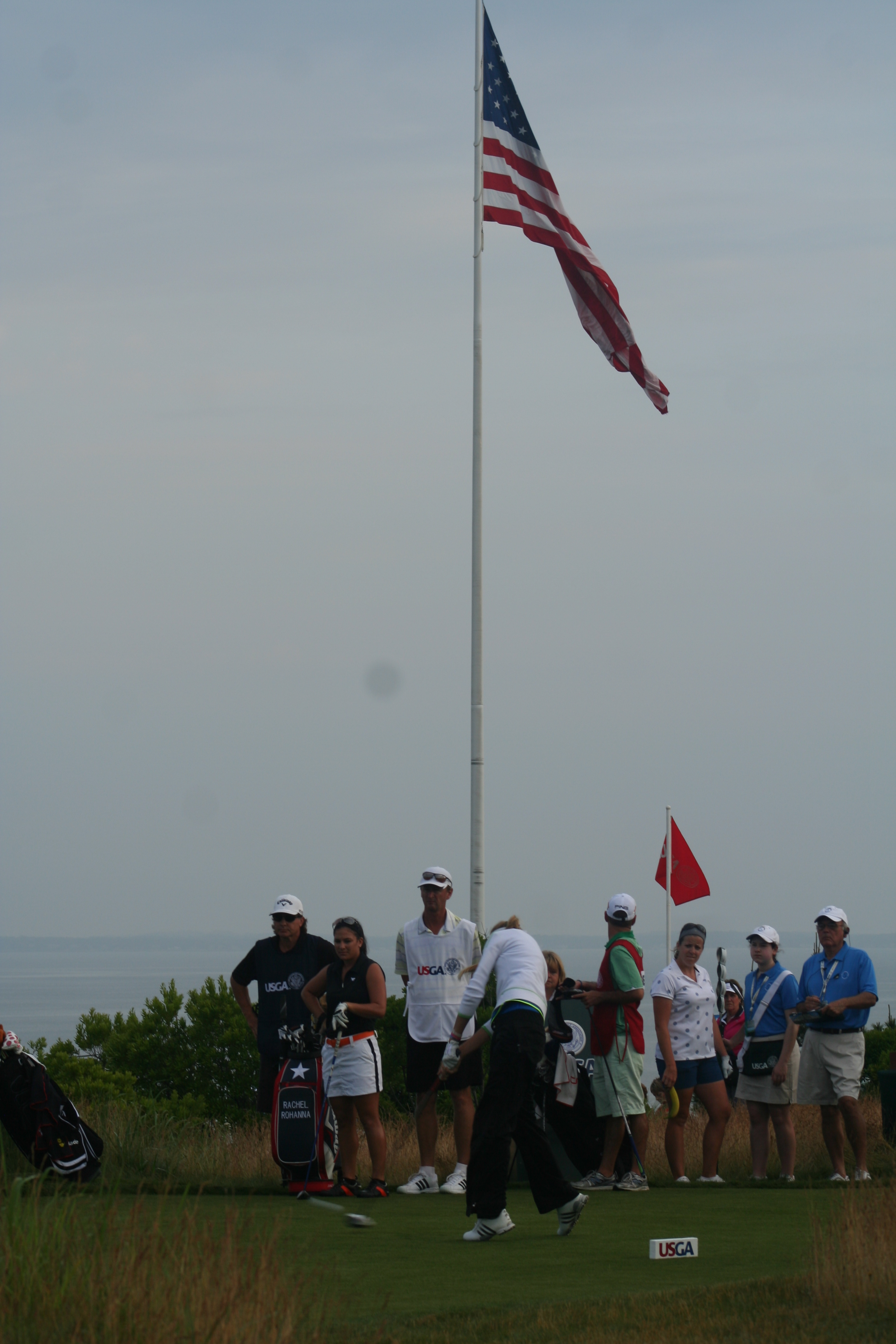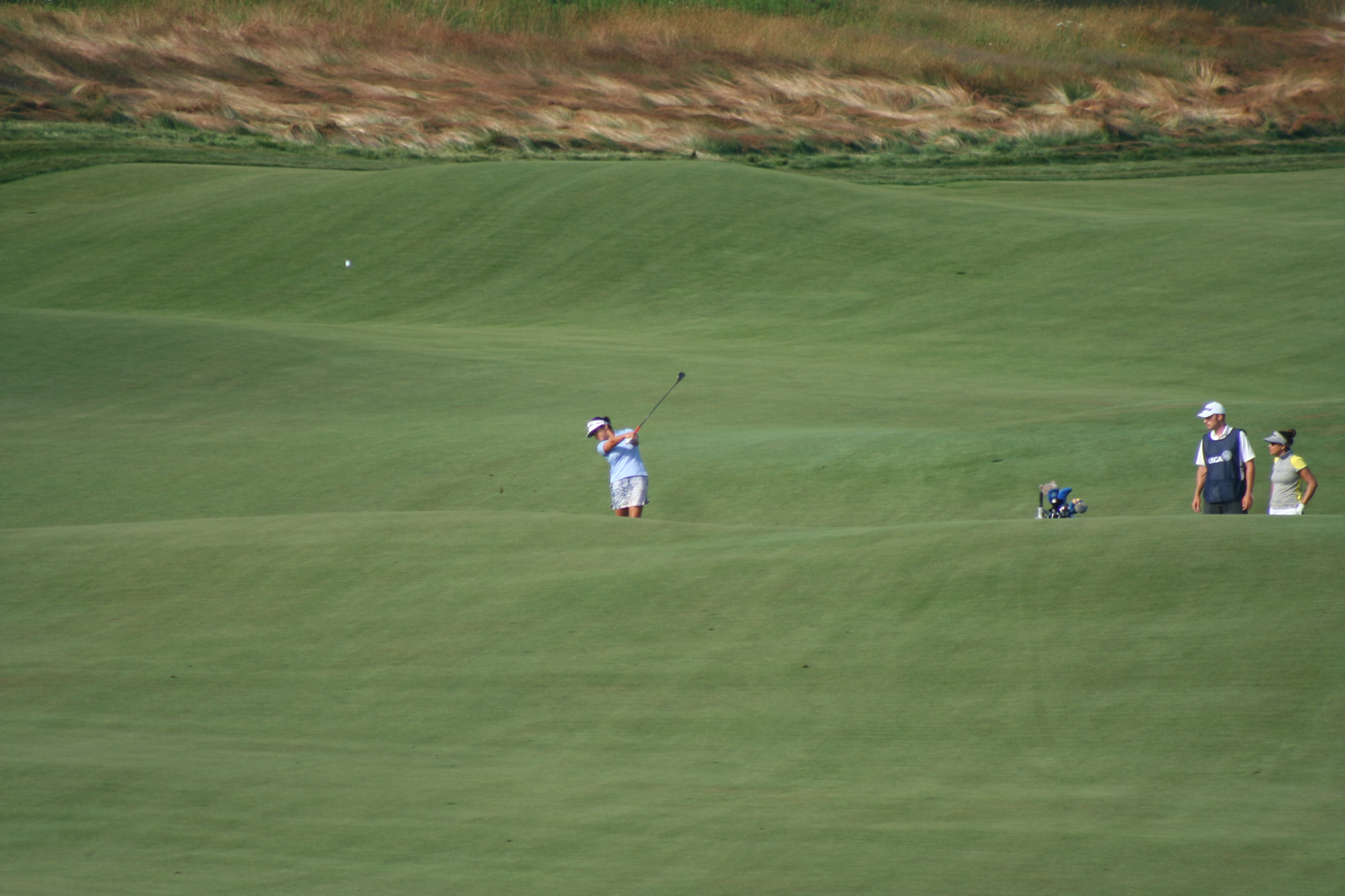 After three practice days, it’s easy to ensnare oneself in the notion that it’s all for practice. When the actual tournament commences, the cold water to the morning face is sensible. With a nice balance of estrogen and testosterone among all on property, the US Women’s Open began comfortably this morning. The marshals were understanding and helpful, unlike men’s major events, when they adopt the guise of corroborators, complicit in the defense of utter silence and complete stillness. 14-year old Nelly Korda struck her first shot in a US Open around 7:09 and birdie putts for competitors began to drop soon after. Here is a gallery from the pre-10 am golfers at Sebonack.