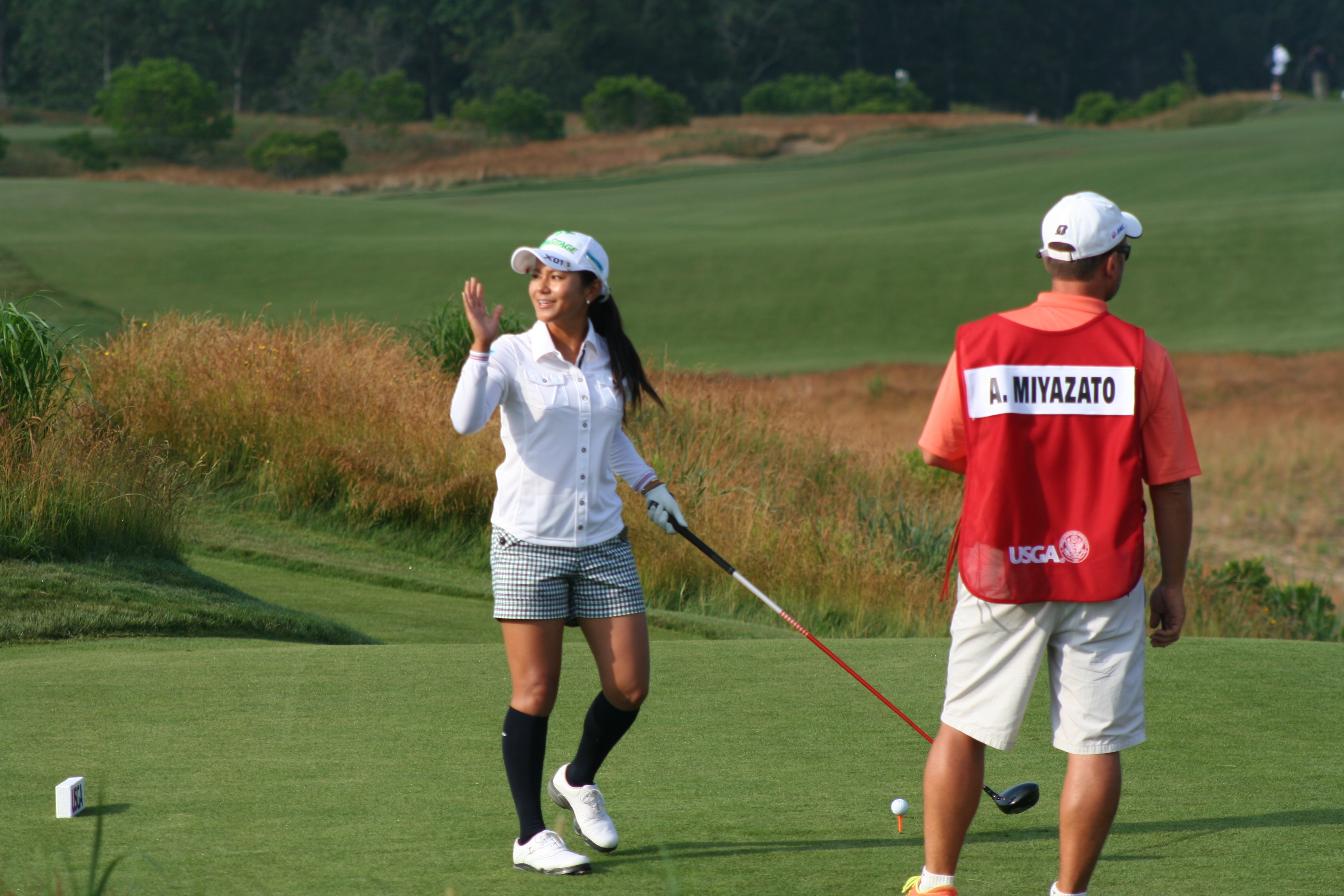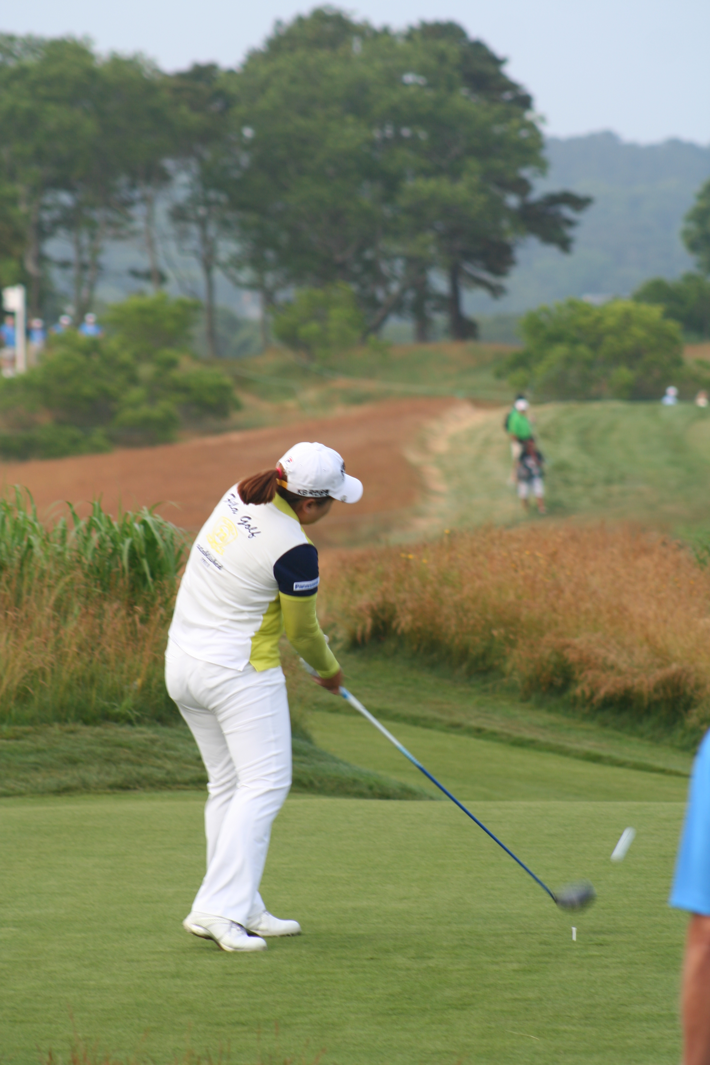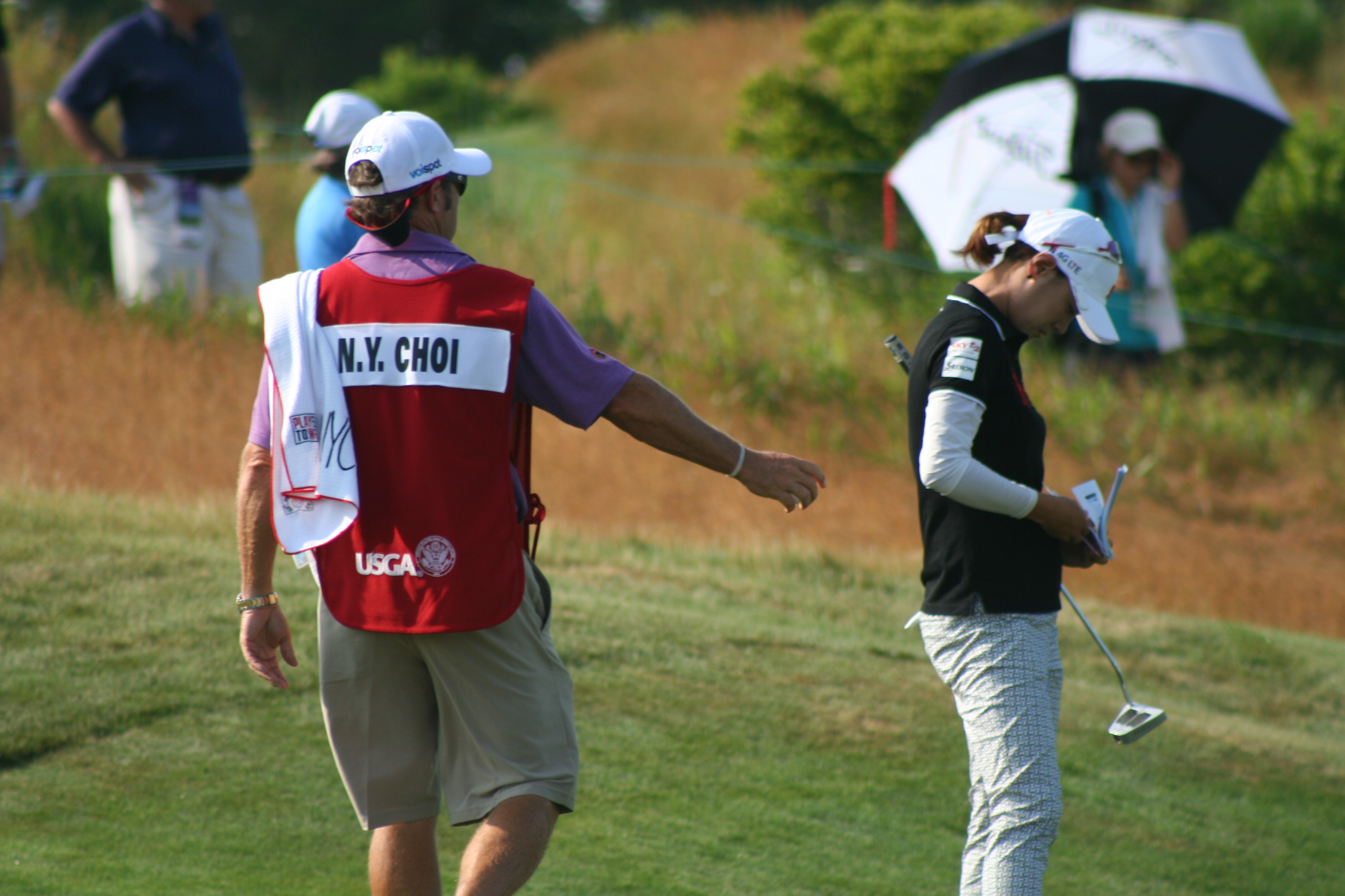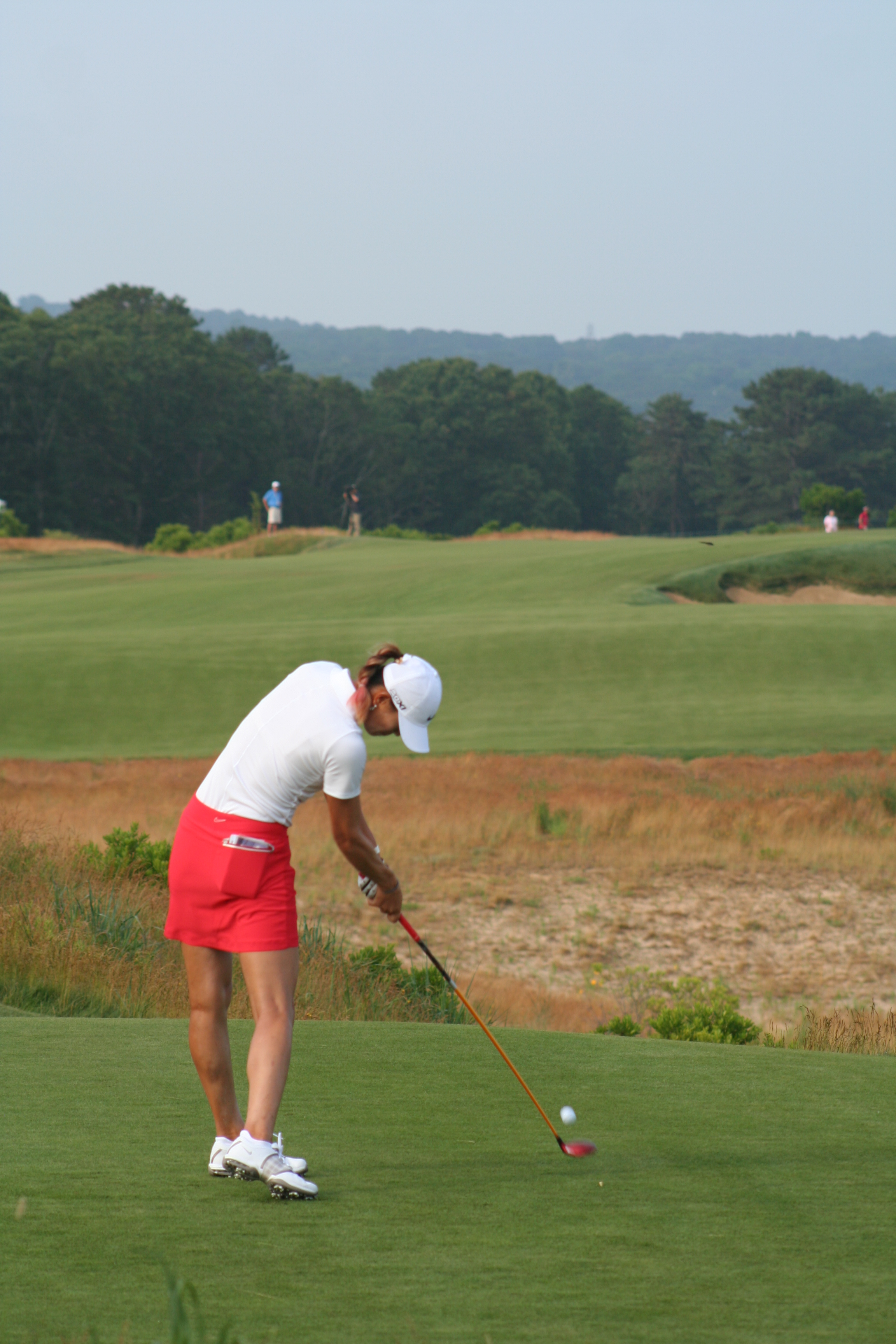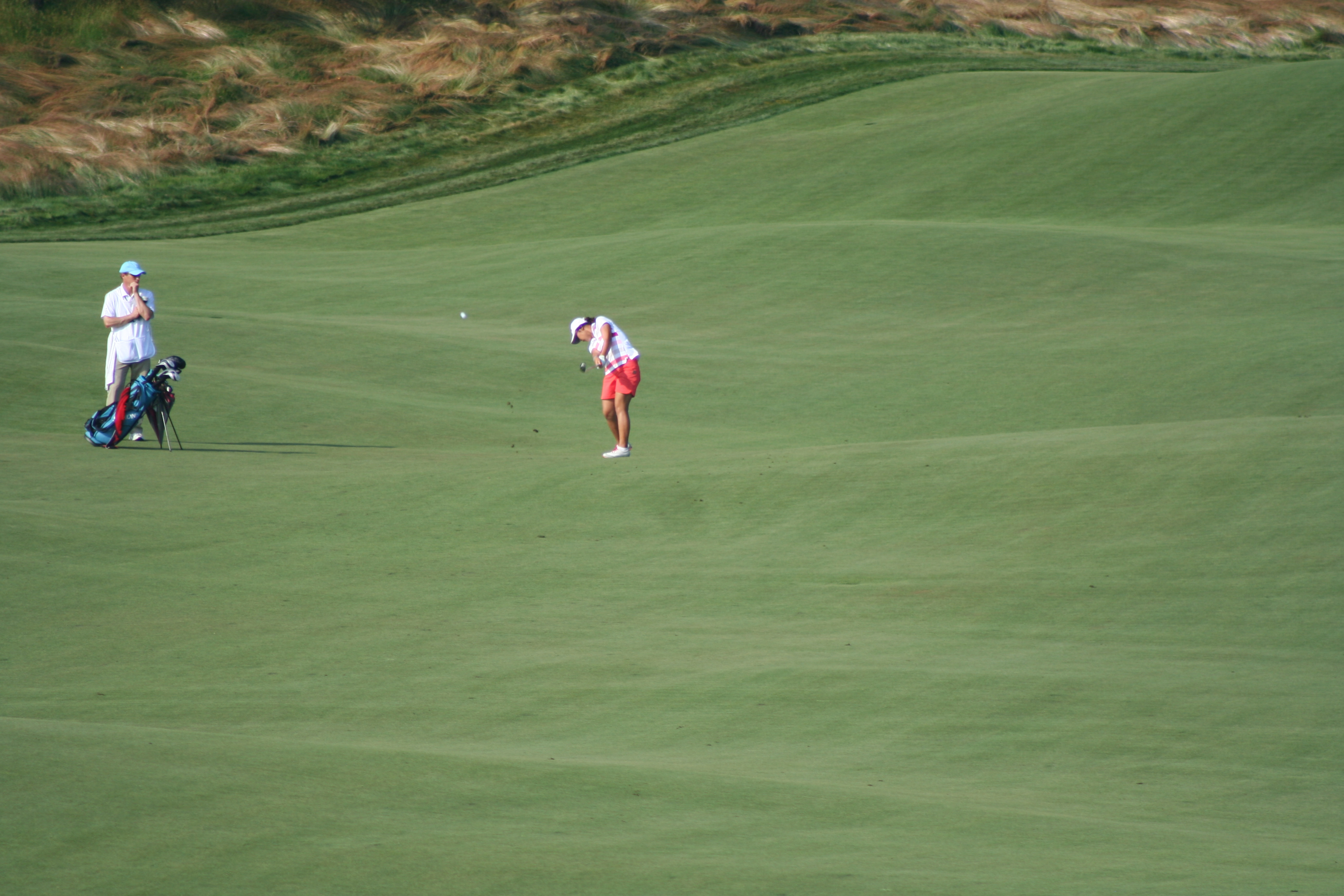 After three practice days, it’s easy to ensnare oneself in the notion that it’s all for practice. When the actual tournament commences, the cold water to the morning face is sensible. With a nice balance of estrogen and testosterone among all on property, the US Women’s Open began comfortably this morning. The marshals were understanding and helpful, unlike men’s major events, when they adopt the guise of corroborators, complicit in the defense of utter silence and complete stillness. 14-year old Nelly Korda struck her first shot in a US Open around 7:09 and birdie putts for competitors began to drop soon after. Here is a gallery from the pre-10 am golfers at Sebonack.