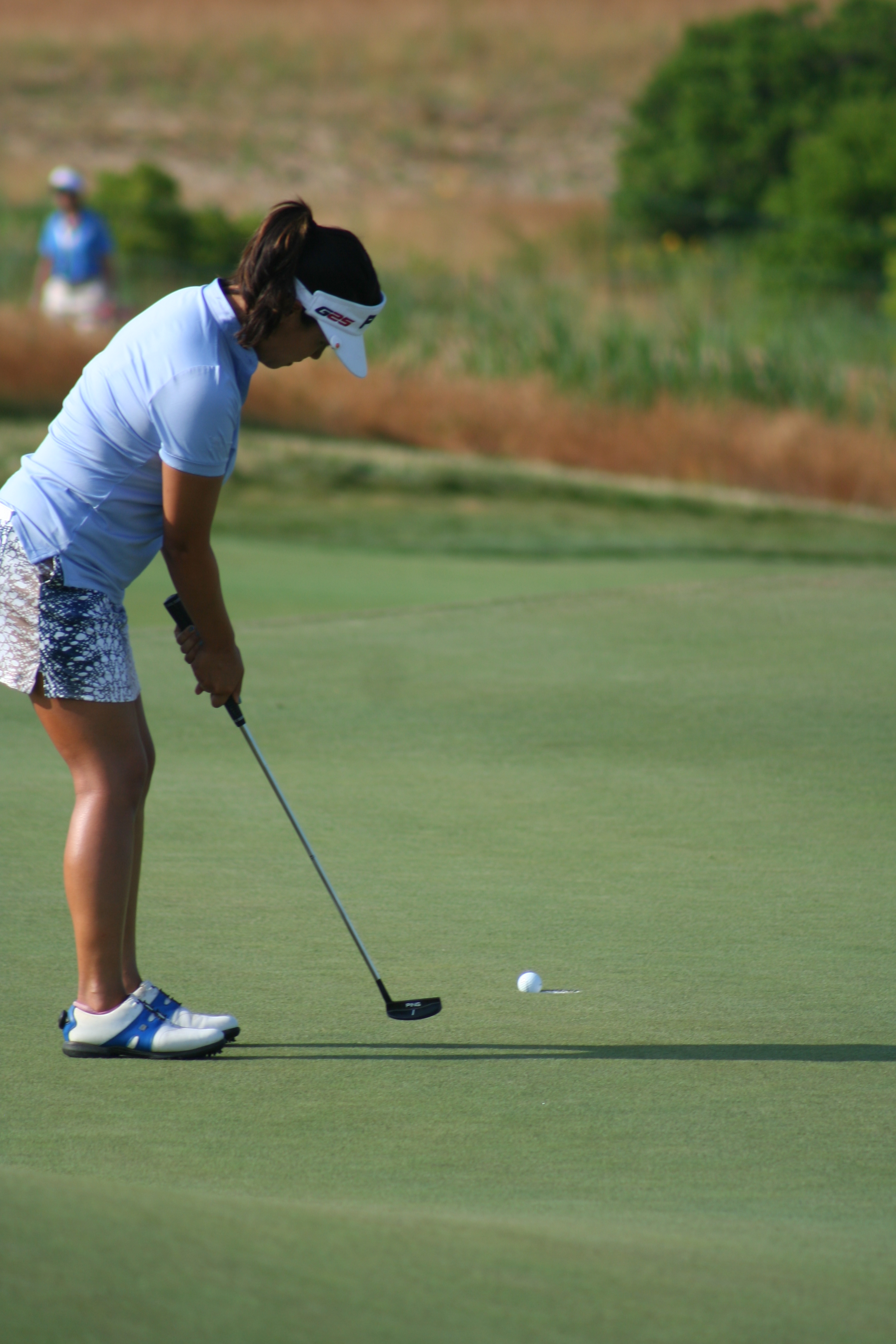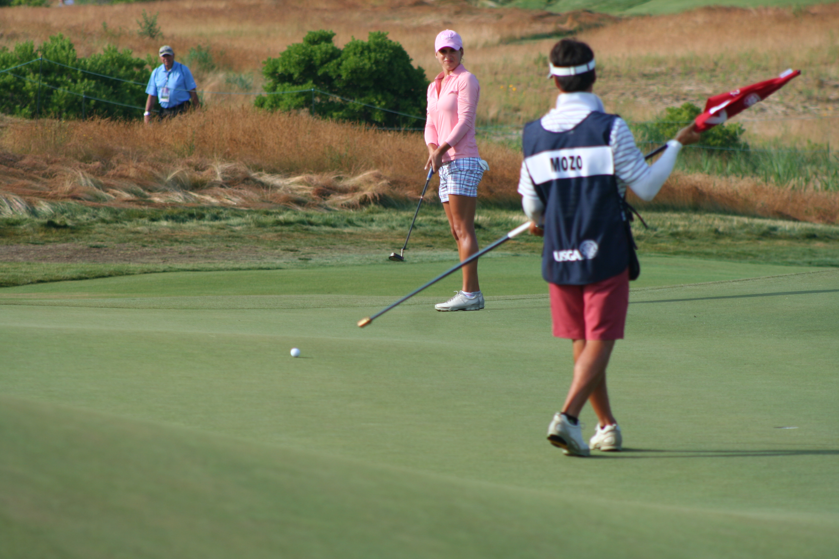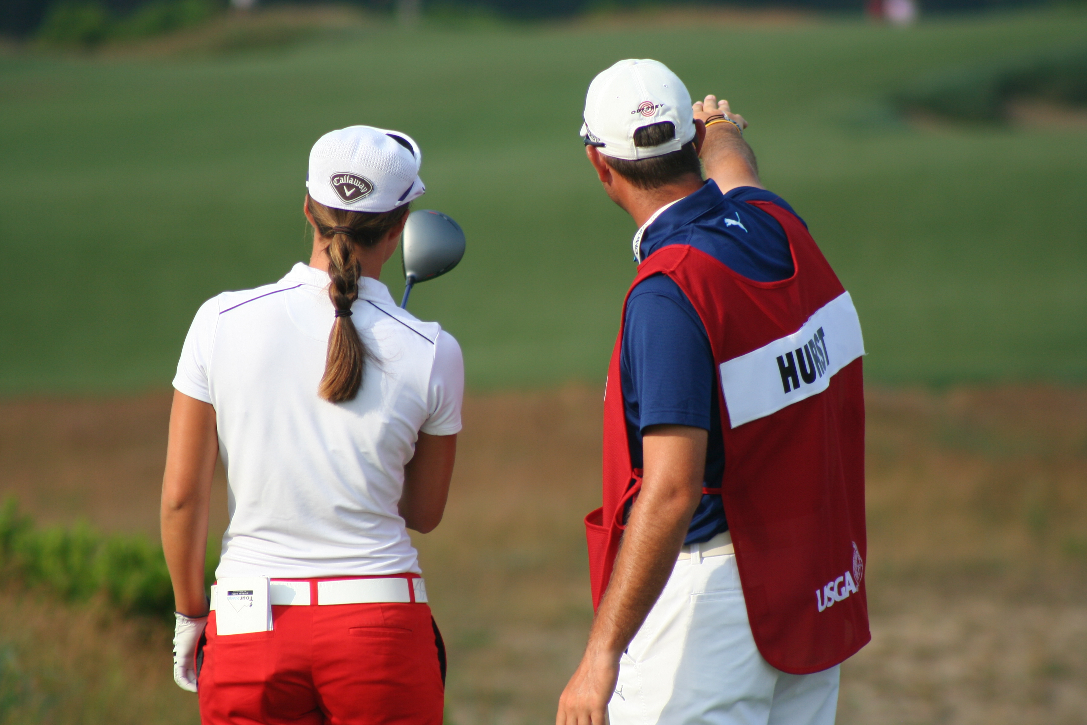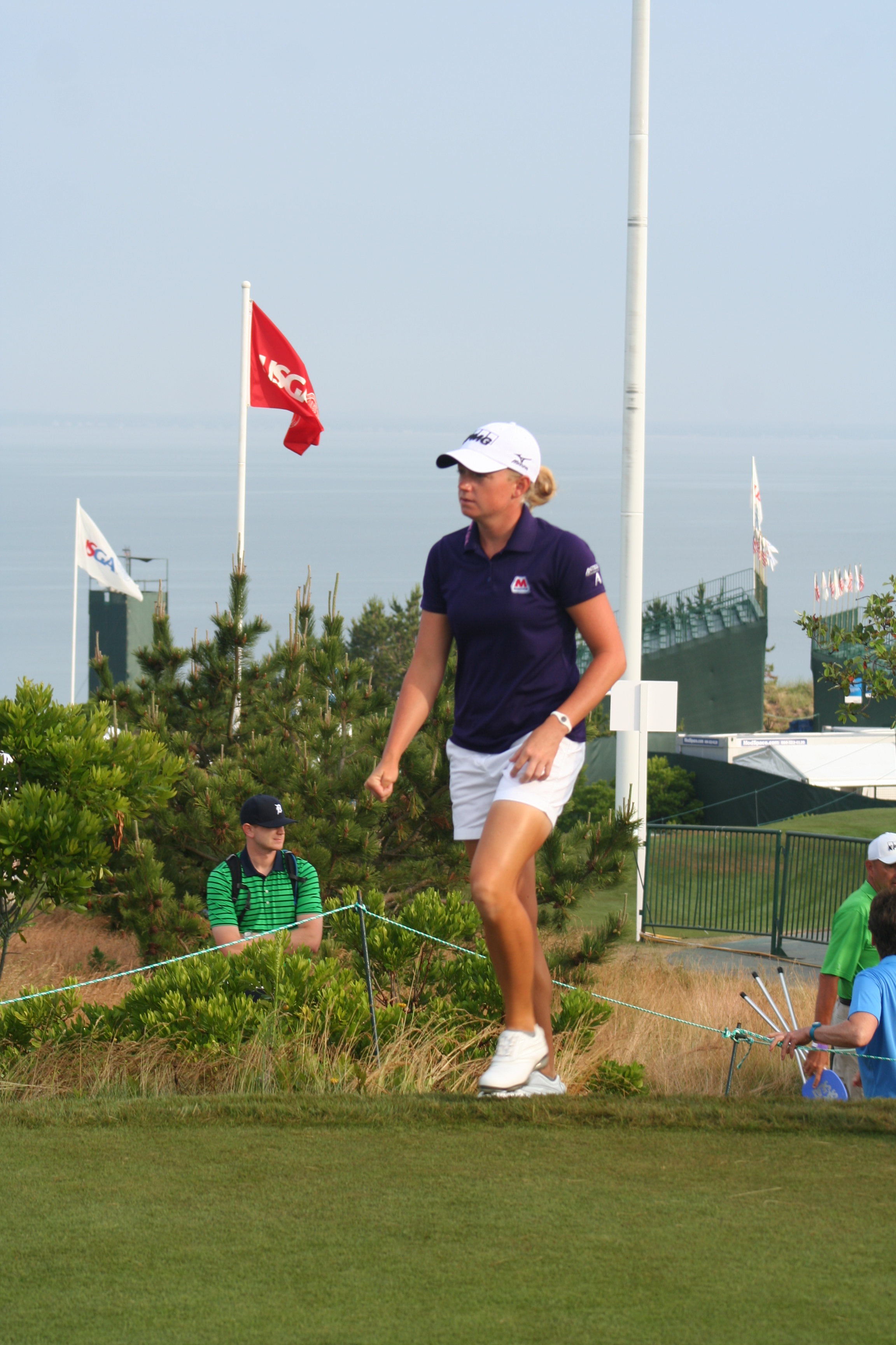 After three practice days, it’s easy to ensnare oneself in the notion that it’s all for practice. When the actual tournament commences, the cold water to the morning face is sensible. With a nice balance of estrogen and testosterone among all on property, the US Women’s Open began comfortably this morning. The marshals were understanding and helpful, unlike men’s major events, when they adopt the guise of corroborators, complicit in the defense of utter silence and complete stillness. 14-year old Nelly Korda struck her first shot in a US Open around 7:09 and birdie putts for competitors began to drop soon after. Here is a gallery from the pre-10 am golfers at Sebonack.