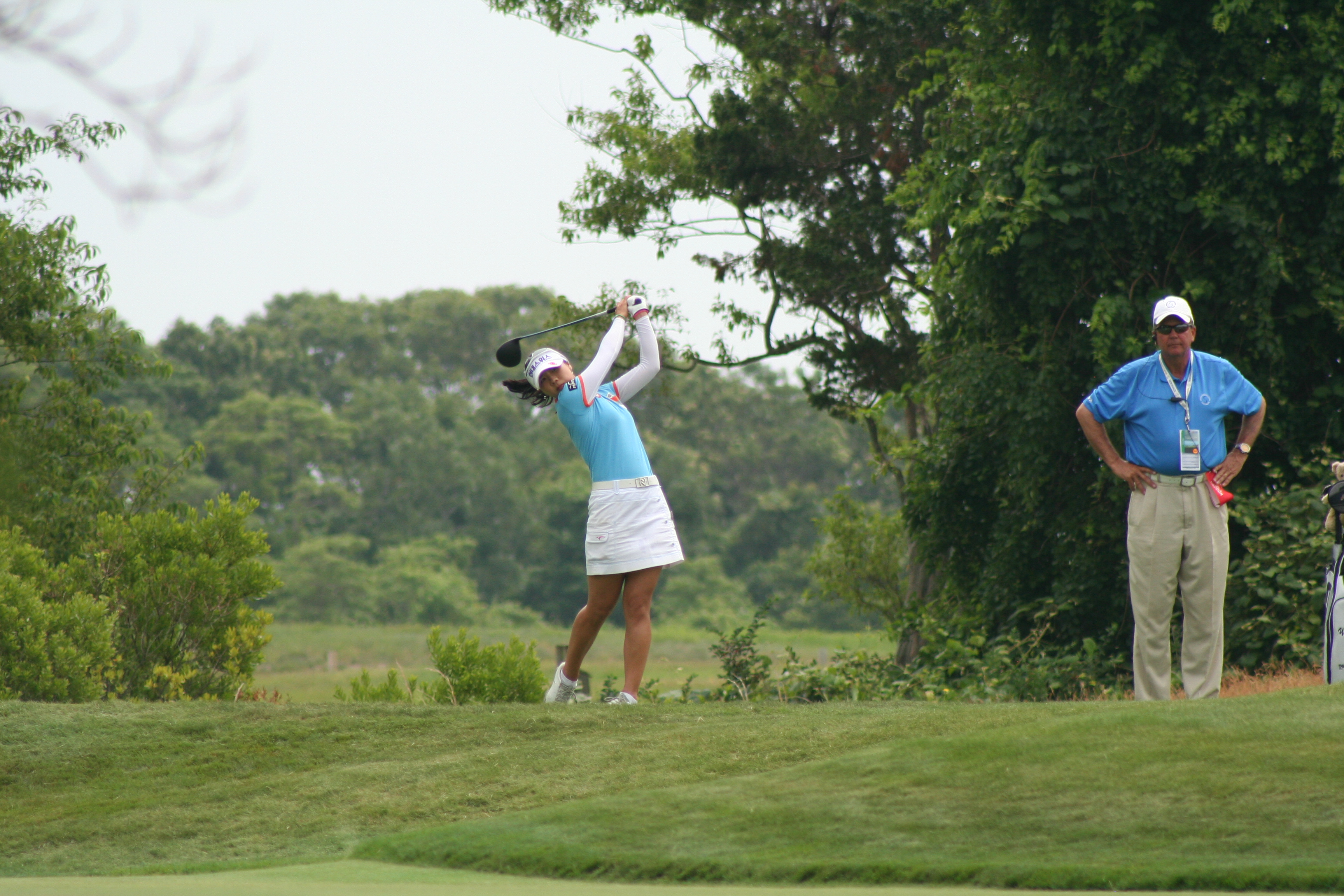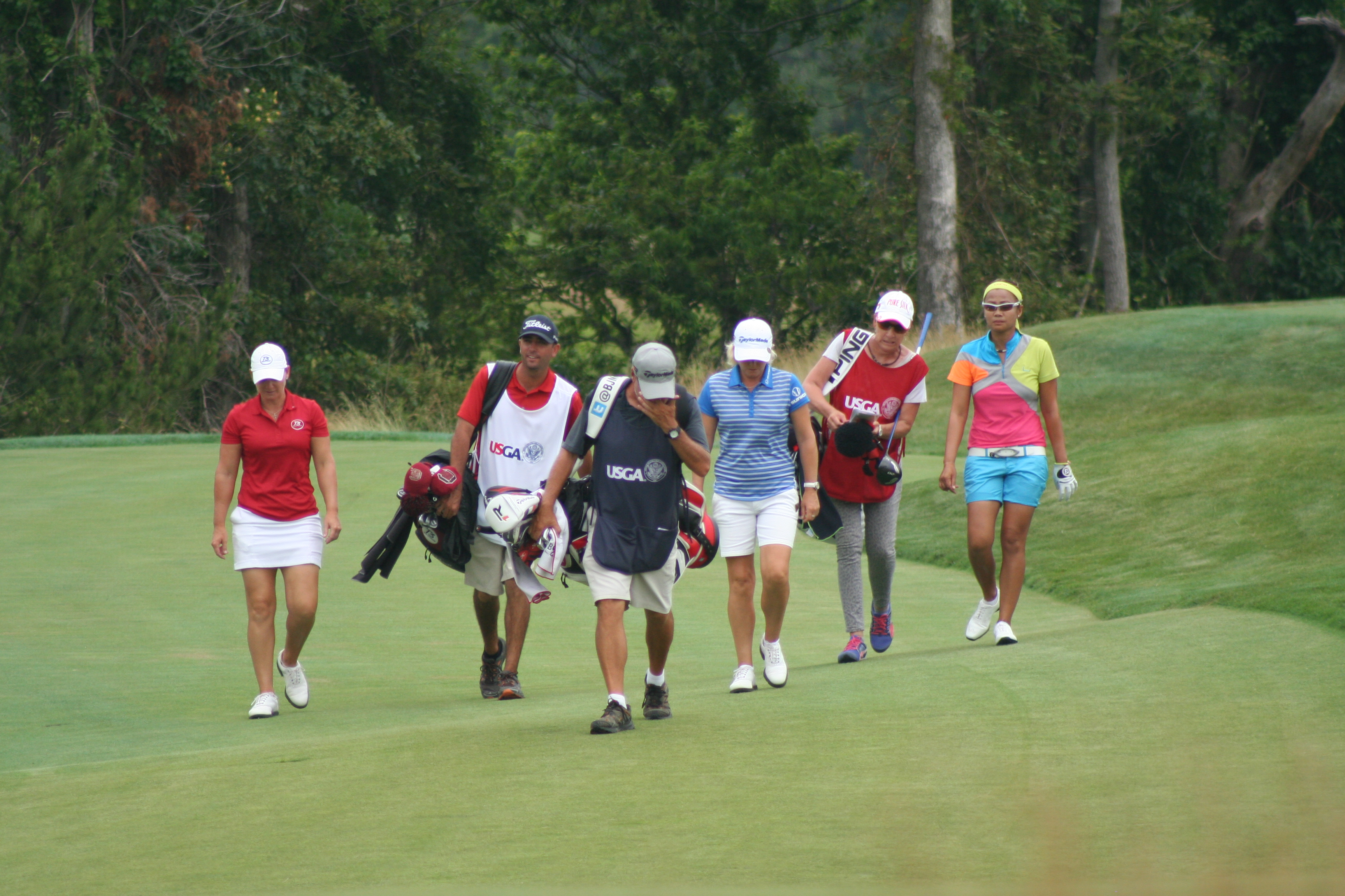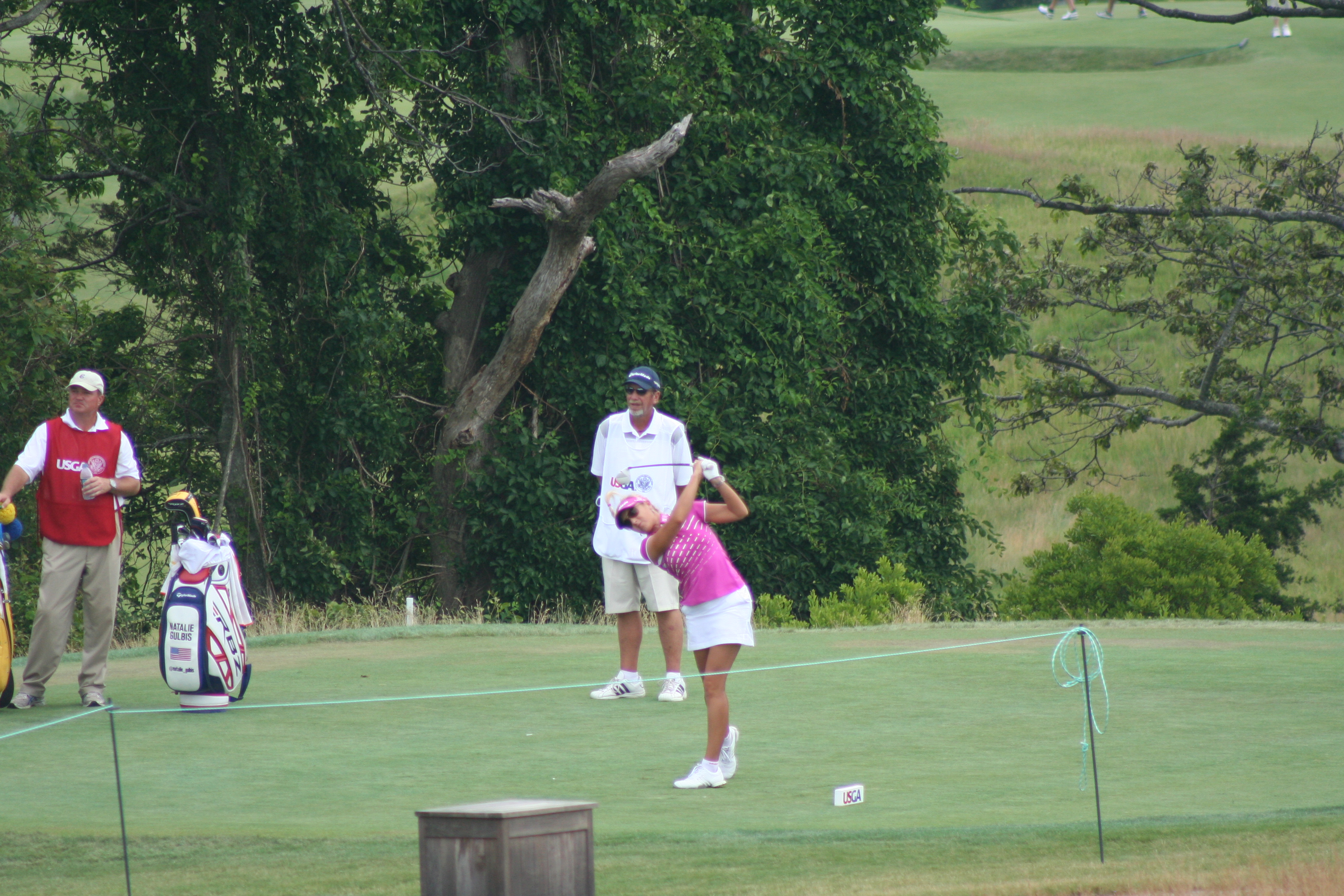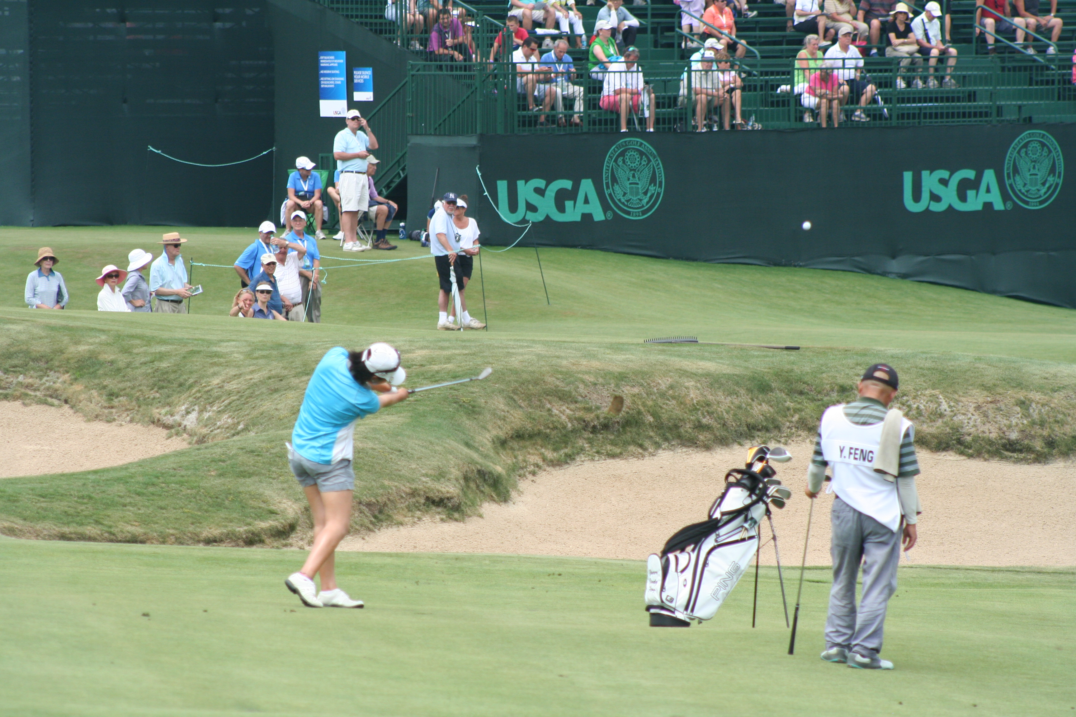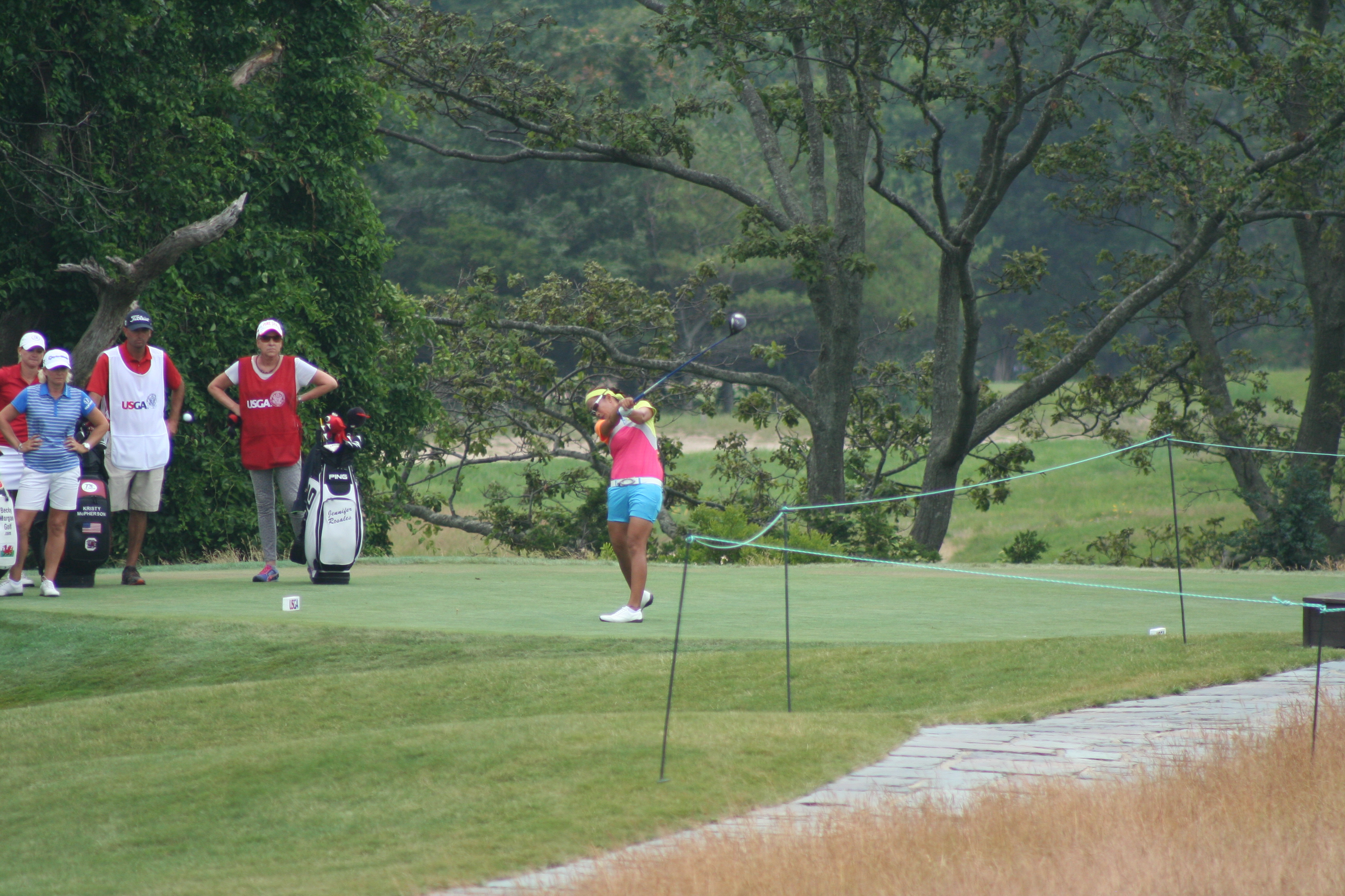 Reason #2: It has perfect placement in the round and on the course. This 9th green is near the 18th green, 1st and 10th tees. You can’t but hear the roars of a green driven or an eagle putt holed. Today you could hear the rowdies from next door in that corner of the course. Imagine a golfer just out of sight of the leaders making two or (grant us this, o Lord) one and picking up 2 or 3 strokes on the field. How fired up would she be heading to the back nine?