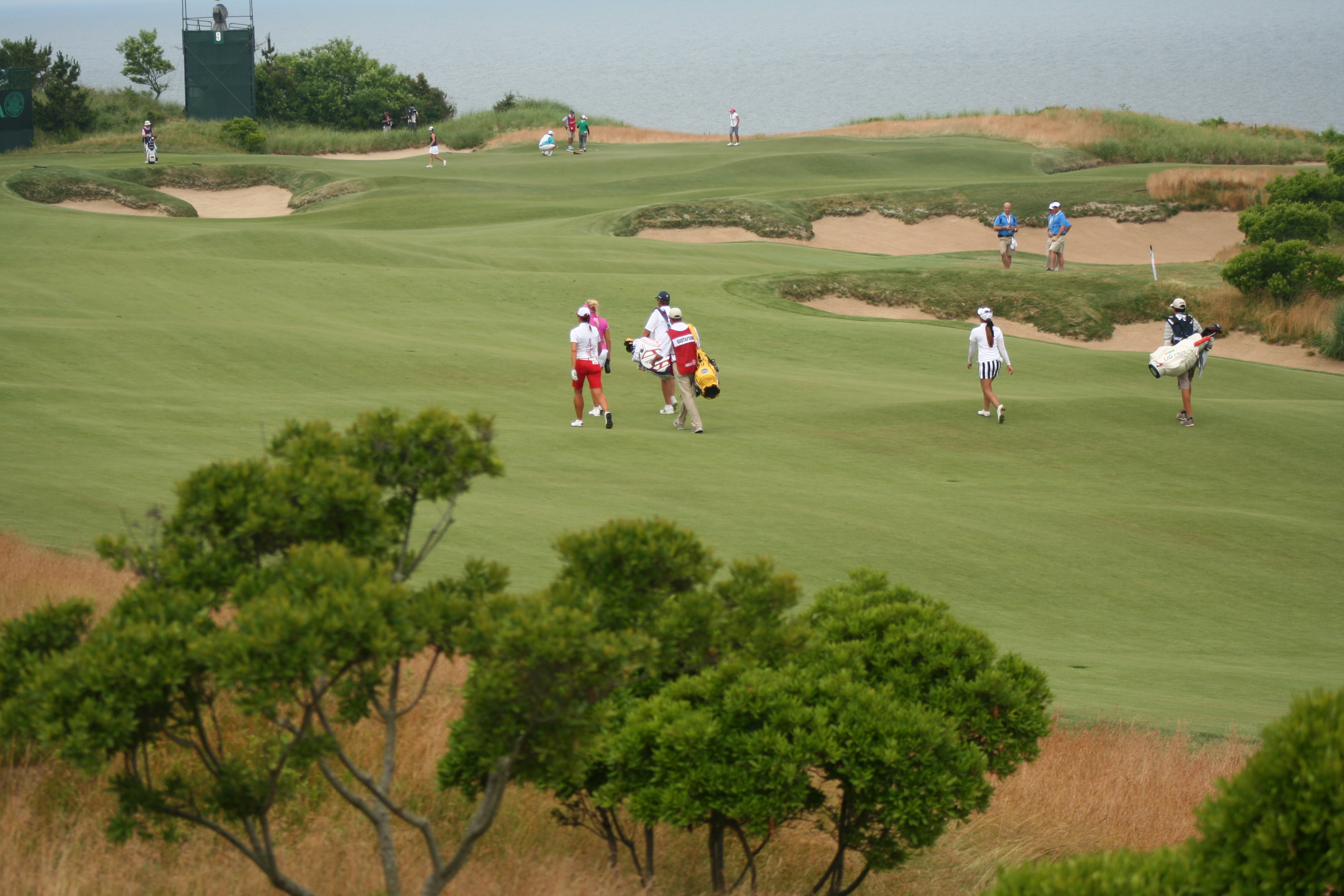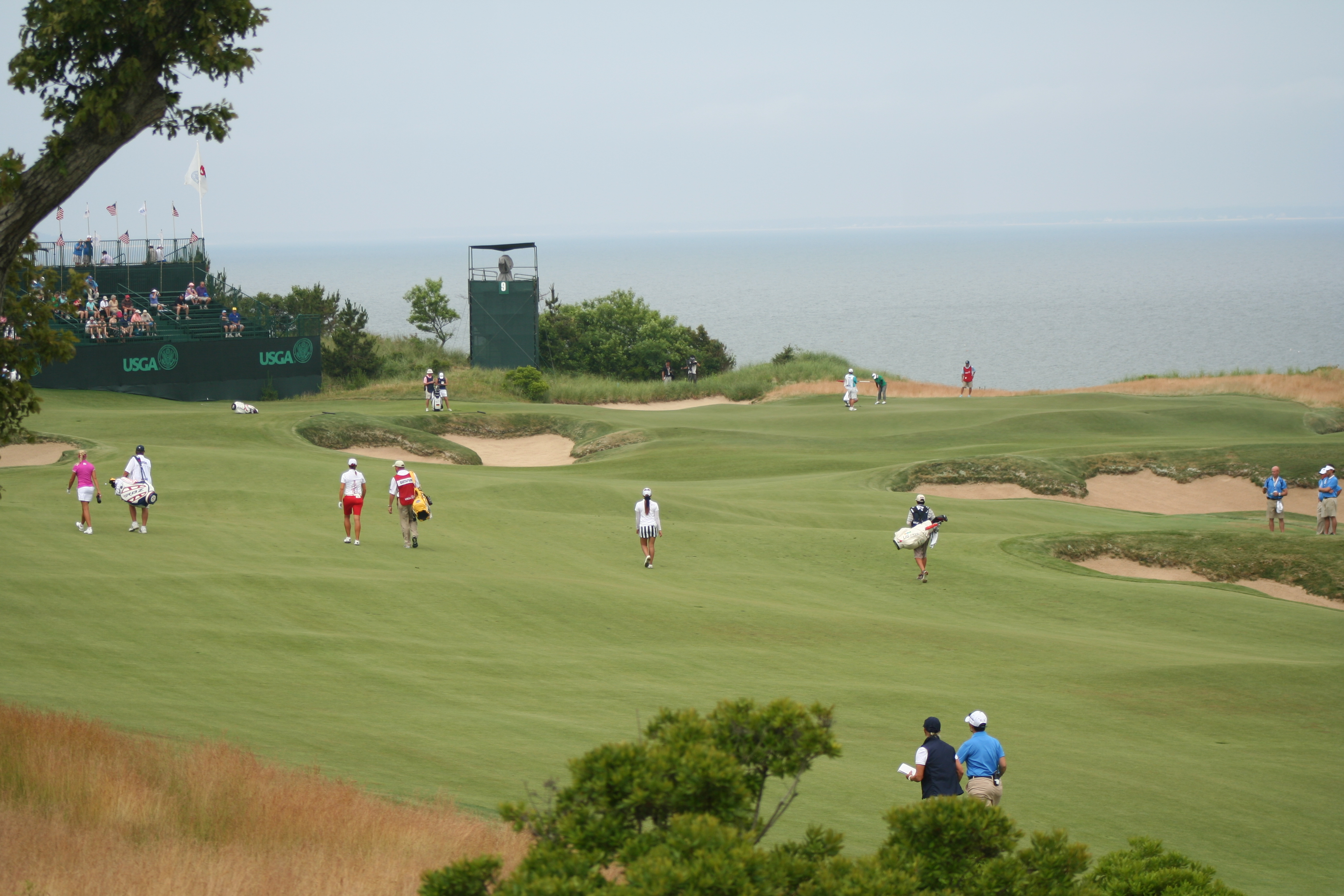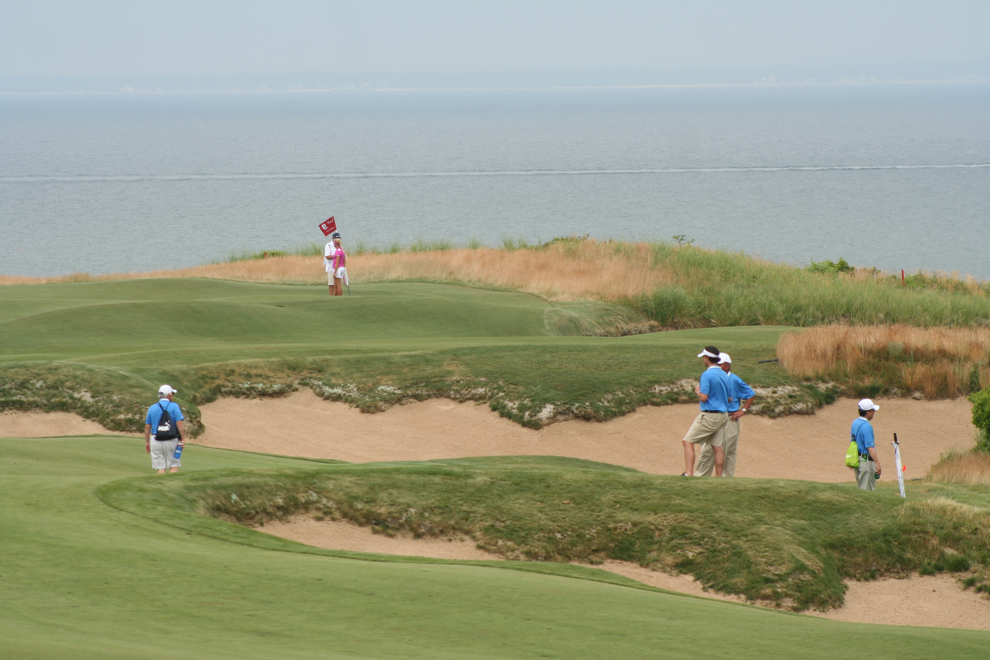 Until today, I wanted Mike Davis and the USGA Open set-up committee to make the 4th hole the “short par four of the week.” Driveable it could be, but what gnawed at the back of my lid was its placement in the round…too early. As I wandered out to the 9th (normally the 1st at Sebonack) hole around 11, I realized that this was the perfect hole to set up on Sunday for the eagle challenge.