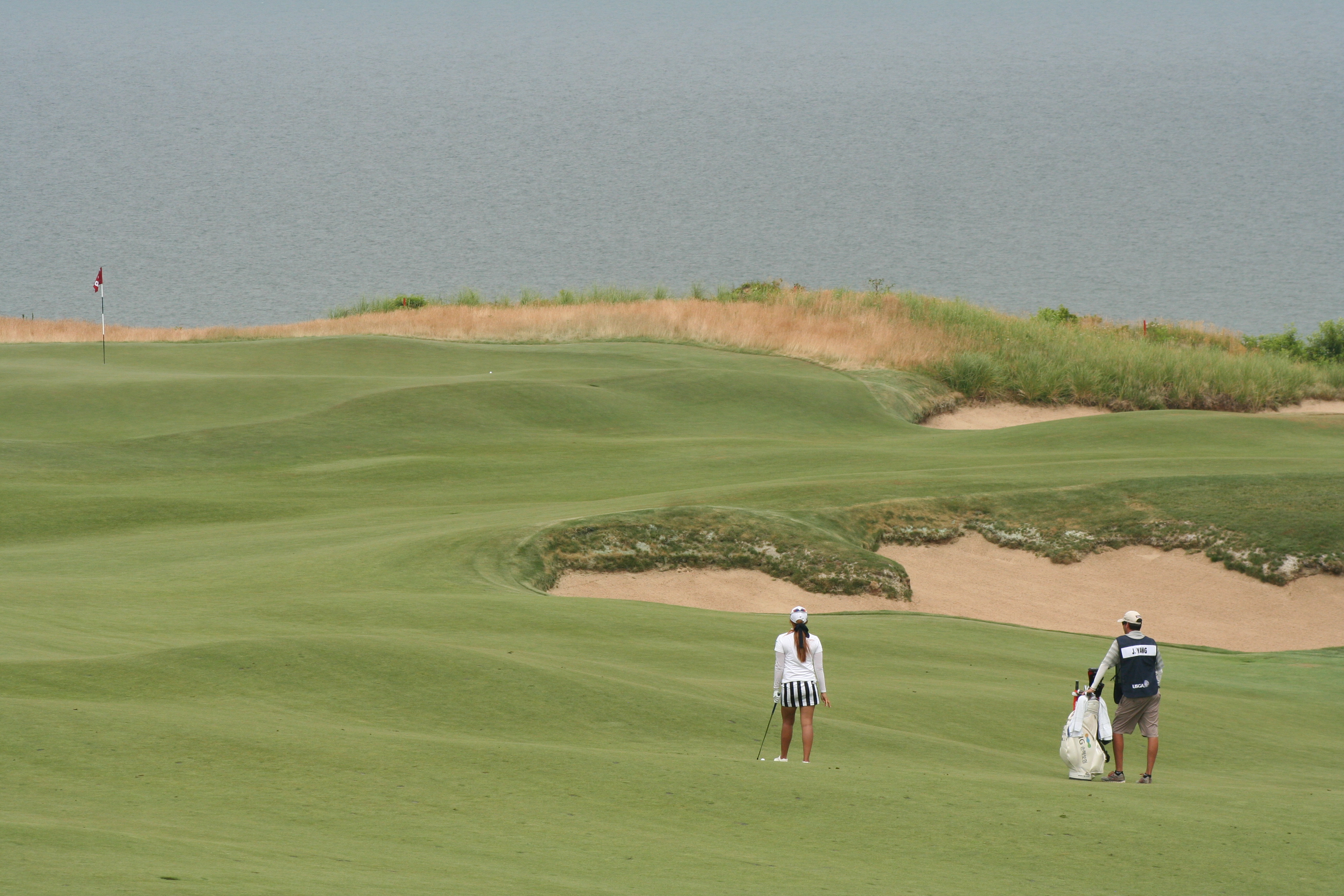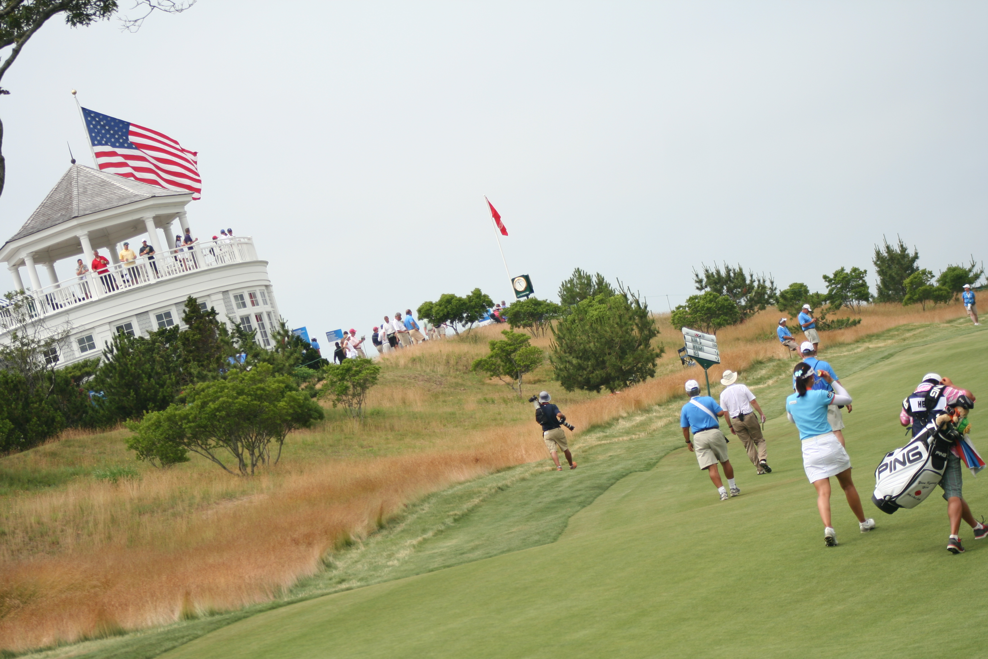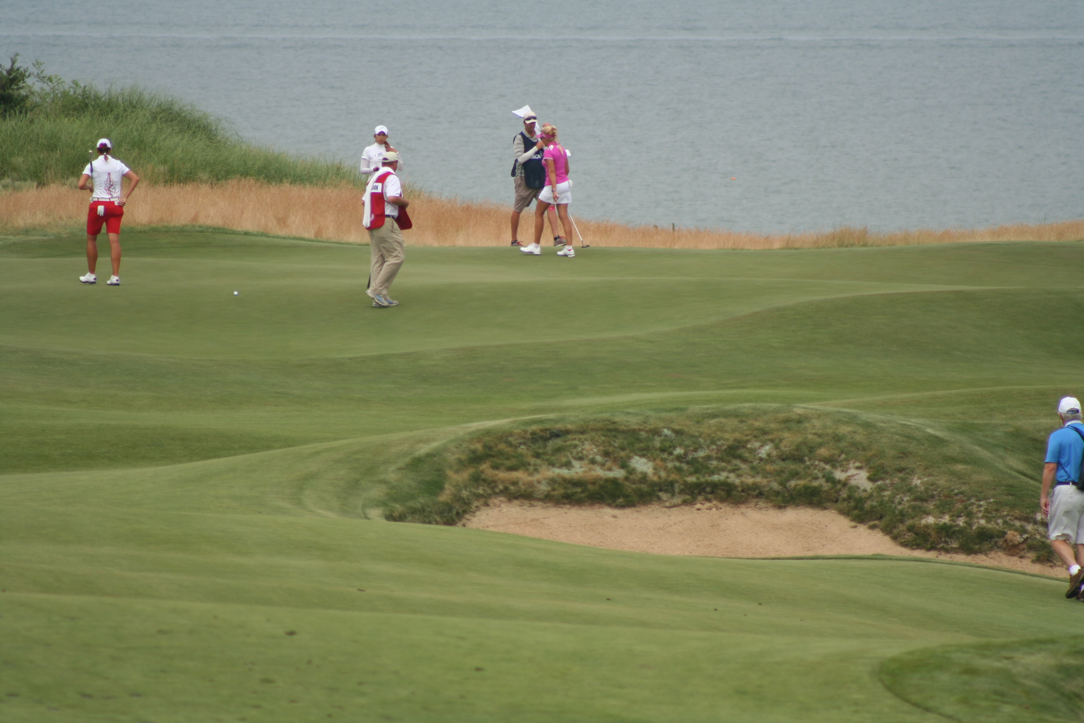 Until today, I wanted Mike Davis and the USGA Open set-up committee to make the 4th hole the “short par four of the week.” Driveable it could be, but what gnawed at the back of my lid was its placement in the round…too early. As I wandered out to the 9th (normally the 1st at Sebonack) hole around 11, I realized that this was the perfect hole to set up on Sunday for the eagle challenge.